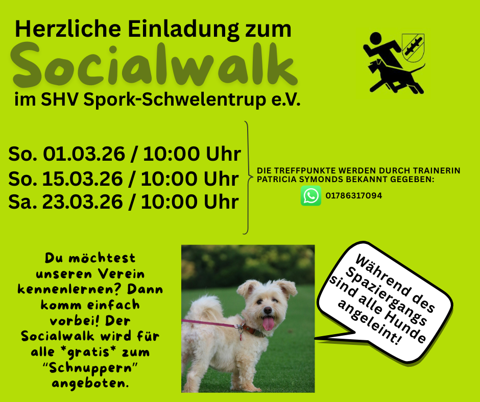 Am Sonntag, den 16. Juni haben wir „Tag der offenen Tür“ auf dem Hundeplatz in Spork, Ellernweg. Beginn ist 14:00 Uhr und das Ende ist für 17:00 Uhr geplant. Für das leibliche Wohl ist gesorgt. Es gibt Kaffee, Kuchen und eine Bratwurst vom Grill.